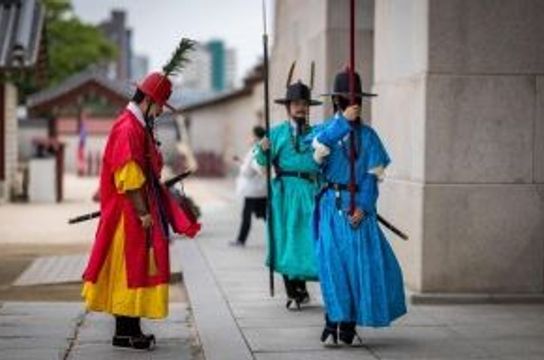 Ce matin, plongez dans l'histoire royale de Séoul avec la relève de la garde au palais de Gyeongbokgung. Explorez ensuite les palais Joseon et Bukchon, puis arpentez les rues vivantes d'Insa-dong, quartier central aux multiples salons de thé, restaurants et boutiques traditionnelles.