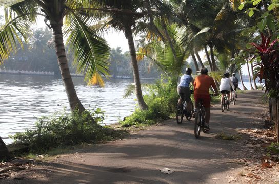 Lever matinal pour une exploration de la ville à vélo ; les petites maisons colorées aux accents portugais, hollandais ou anglais, des églises centenaires, les dhobi walla, ces blanchisseurs que l'on retrouve dans tous le pays. Vous en apprenez plus sur cet Etat étonnant où se mêlent héritage colonial et indianité ancestrale. Le reste de la journée est libre, sans chauffeur. La côte tropicale de Malabar en toile de fond, vous vous engagez dans ses petites rues abritant des mosquées, une synagogue du XVe siècle, ainsi que le célèbre palais Mattancherry, édifié par les Portugais puis restauré par les Hollandais. En fin d'après-midi, vous participez à un atelier de Kolam, ces dessins traditionnels, tracés à la craie ou à l'aide de poudres colorées, que l'on retrouve devant les pas de porte des maisons.