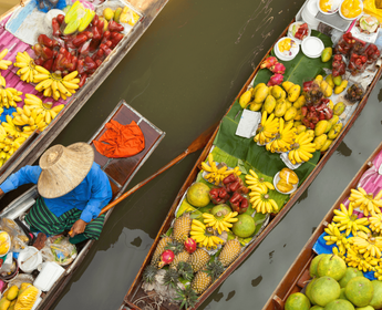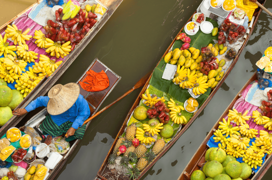 Dès l’aube, vous partez pour 1h de train vers le marché de Mahachai, puis vous rejoignez plus au sud le photogénique et incontournable marché ferroviaire de Mae Klong. Après une pause au marché flottant de Damnoen Saduak, vous savourez un déjeuner local. L'après-midi, découvrez les majestueuses chutes d’Erawan, avec leurs eaux cristallines et cascades en pleine jungle. Fin de journée et nuit à Kanchanaburi.