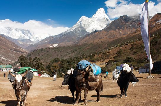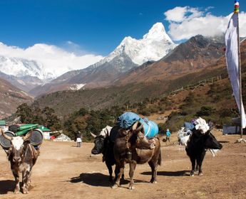 Vous entamez votre trek en descendant vers Phakding, en rejoignant l’itinéraire principal venant de Lukla. Le sentier traverse des hameaux sherpas, longe des moulins à prières et des pierres mani gravées, tout en offrant de belles vues sur la rivière Dudh Koshi.